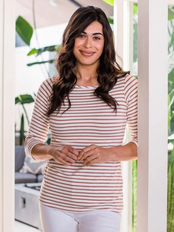 Boatneck, 3/4 sleeves. Relaxed fit through the body, hip length. Bamboo Viscose Jersey. Sizes S-XL
